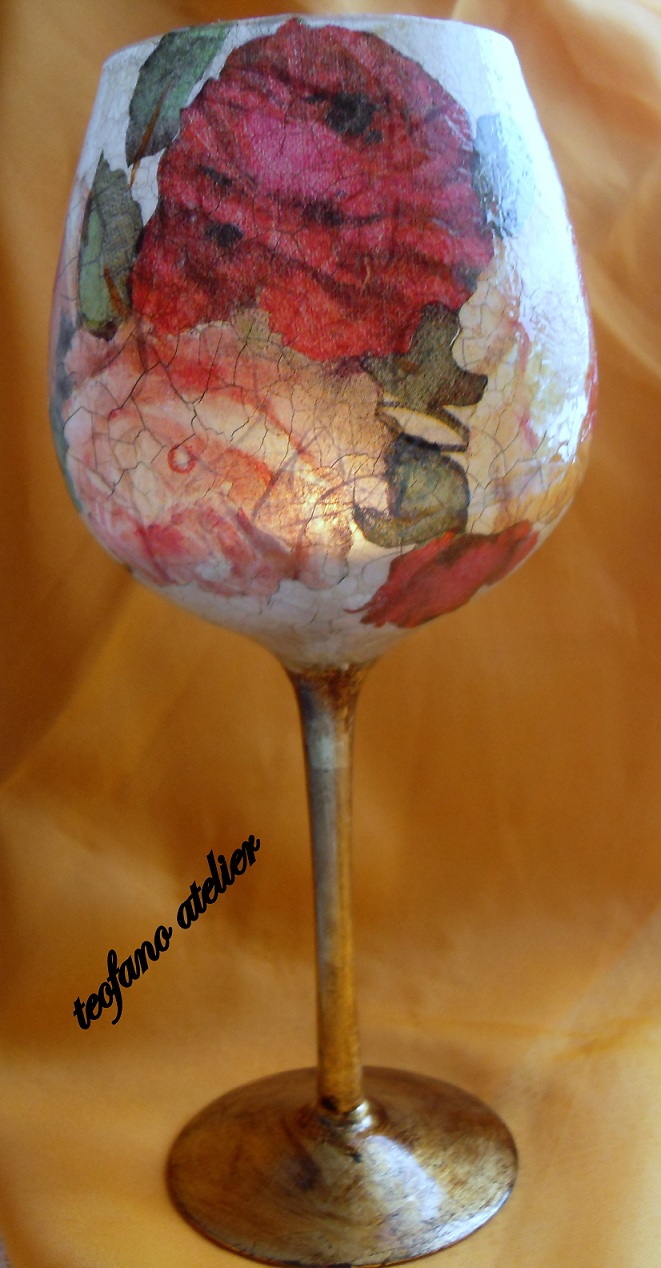 Zrobiłam sobie świecznik w róże. Motyw nałożyłam stosując technikę decoupage.